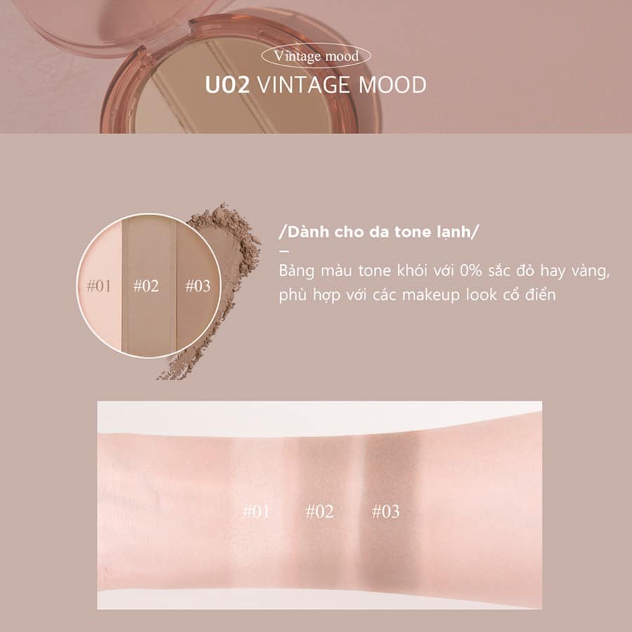 Nếu U01 là dòng phấn tạo khối tập hợp các tone trung tính lạnh, thì Black Rouge Up And Down Triple Contouring U02 là sản phẩm tích hợp 3 sắc màu tone khói với 0% sắc đỏ hoặc vàng. Đây là thiết kế thứ 2 thuộc bộ sưu tập phấn mắt nhà Black Rouge gồm 2 loại: