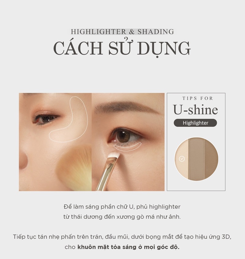 - Champagne hồng giúp tăng thêm sức sống và vẻ ửng hồng cho gương mặt, thường được dùng để highlight cho vùng chữ U.