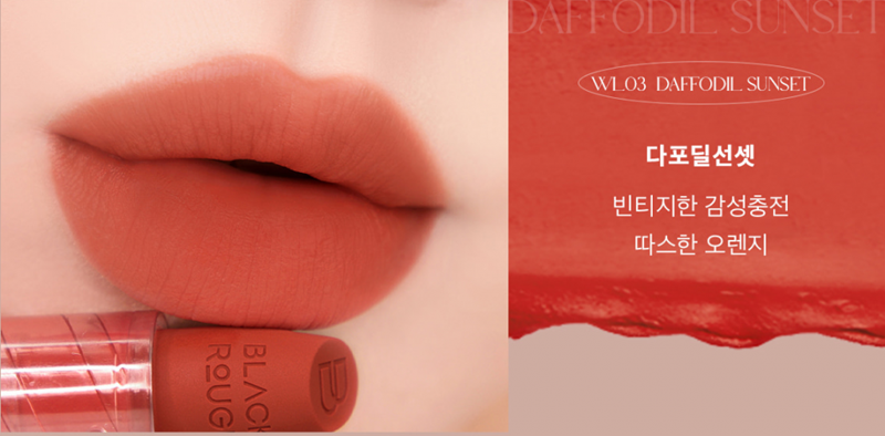 Black Rouge Wearable Velvet Lipstick WL03 là một trong những màu dễ dùng nhất của BST son này. Sự kết hợp giữa tone cam cùng một chút tone đất và hồng san hô tạo ra một màu son cam ấm cực kỳ tự nhiên và phù hợp nhất khi dùng vào mùa thu đông. Chỉ cần make up nhẹ nhàng và lên đồ theo phong cách vintage là bạn đã có một tạo hình đầy mới mẻ và có gu hơn.